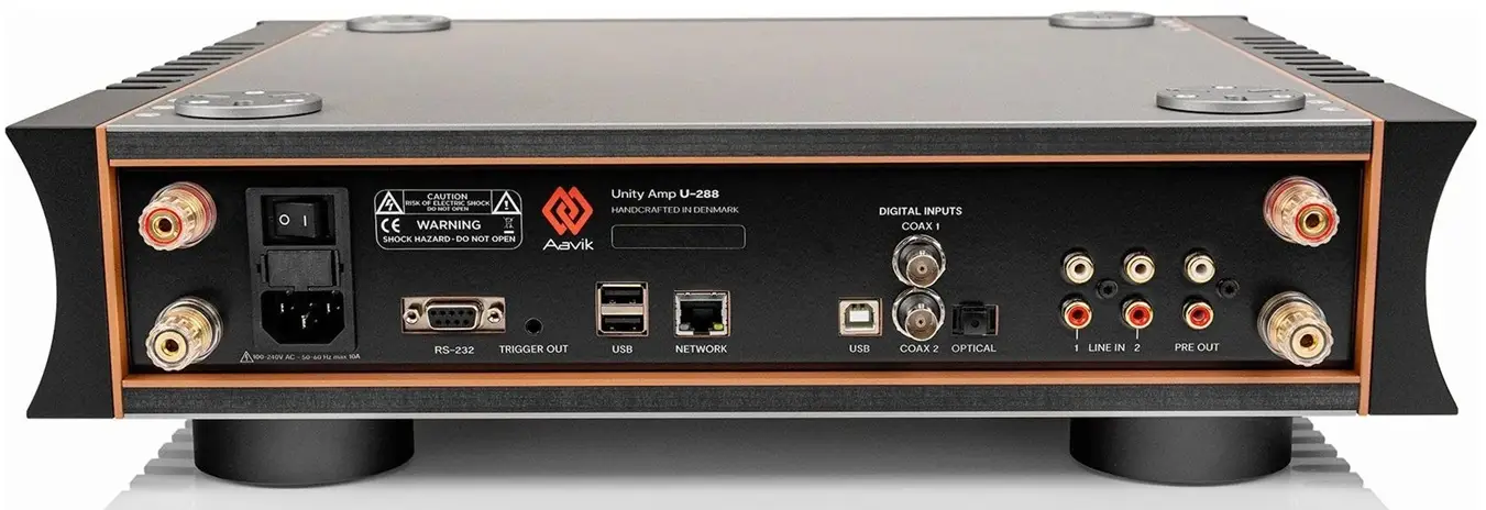 The Aavik U-288 integrates streaming, DAC, line stage, and amplification into a single enclosure. This design minimises signal loss and ensures effortless, distortion-free music reproduction.