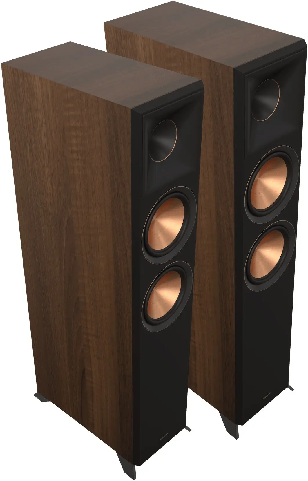 Choose from elegant ebony vinyl or walnut vinyl finishes, both featuring satin painted baffles with a scratch-resistant finish. The cast aluminum feet offer a modern look with reduced resonance compared to MDF or ABS plastic. The feet are designed to minimize surface area in contact with the floor, decoupling the speaker for faster, tighter low frequencies and increased detail.