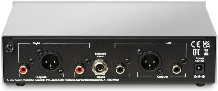 The Phono Box S3 B is finished in a steel chassis, covered by silver or black aluminium panels, for extreme rigidity and good electrical isolation. The neat minimalist aesthetic allows for good spacing between controls on the front panel and connections on the back panel, despite its smaller size. It also features an external power adapter, to keep the sensitive internal signals free from any interferences.