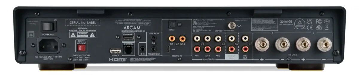 The Arcam A25+ integrates seamlessly into both modern and traditional setups thanks to its broad range of inputs: HDMI eARC for cinematic TV audio with depth and clarity USB-C for direct digital connections to laptops and streaming devices Multiple analogue inputs, including a precision-tuned phono stage for vinyl enthusiasts High-resolution digital inputs for streaming and hi-fi components Whether you’re spinning records, streaming wirelessly, or connecting your TV, the A25+ integrated amplifier guarantees reference-level sound.