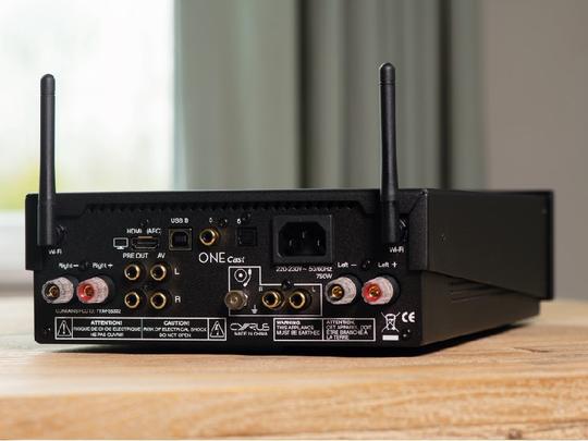 The Cyrus One Cast is a 100W per channel Class D stereo amplifier that you can stream high-quality music to from your phone using Spotify, Deezer, Amazon Music, iTunes, Qobuz, Tidal