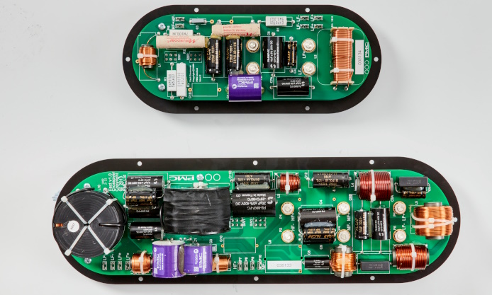 PMC engineers, during Fenestria's development, studied the effects of vibrations on sound. This led to the Fenestria using the best British capacitors and German resistors to reduce internal micro-vibrations affecting performance. The same approach is seen in the Fact Signature series with crossovers on military grade circuit boards. These crossovers use components from the Fenestria, ensuring minimal interference. Each is designed for optimal system performance.