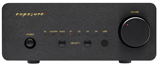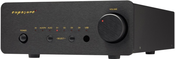 The Exposure XM5 integrated amplifier is part of Exposure's recently introduced XM series of compact half width components. It combines a 60 watts per channel integrated amplifier, a DAC with asynchronous USB and DSD support, and a moving magnet phono stage.