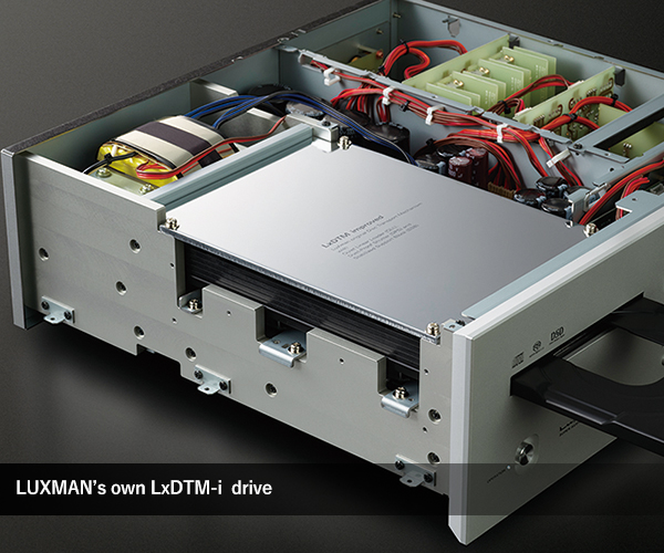 Luxman engineers understand that exposing the disc transport to vibration and resonance can result in subtle distortion. To overcome this challenge, they substantially upgraded the company’s LxDTM disc drive. Made in Japan, the new LxDTM-i encloses the drive in 8 mm thick aluminum sides that extend to the front and rear panels, plus a 5 mm thick steel top plate. For added production, the physical mounting system forms an integrated structure that supports the side frame. An improved disc reading mechanism contributes to music playback of exceptional clarity.