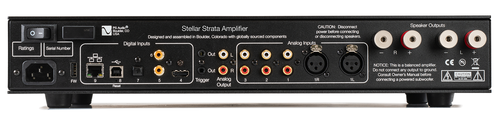 Strata can stream high-resolution audio, or connect to any digital or analog source you wish. With its many digital and analog inputs, Strata is ready to rock!