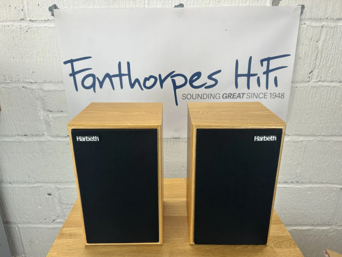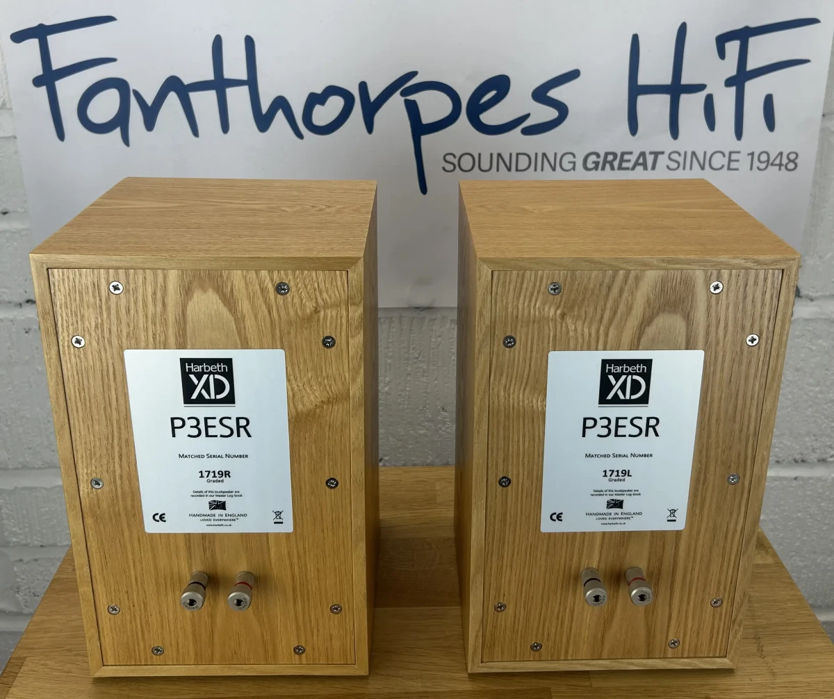 We have this preowned pair of Harbeth P3ESR XD standmount speakers in the olive finish.