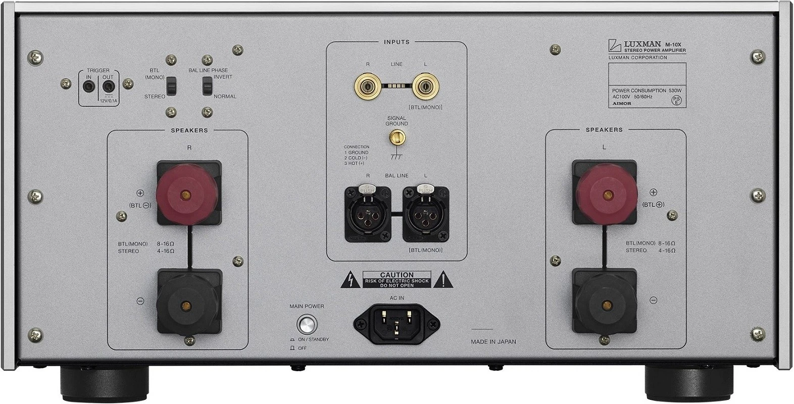 Using their own epoch-making ODNF (Only Distortion Negative Feedback) circuitry as a base, the team at Luxman has designed what is arguably the end-game in systems. The M-10X features a three-phase Darlington circuitry as well as a quad-parallel push-pull system, which can achieve up to 1,200W (at 1 ohm).