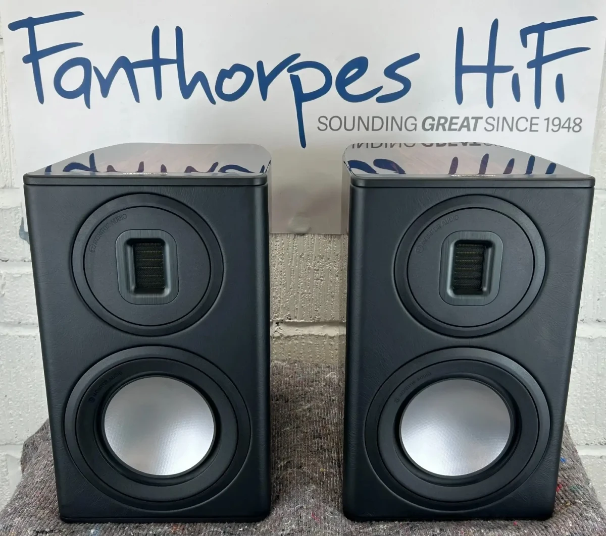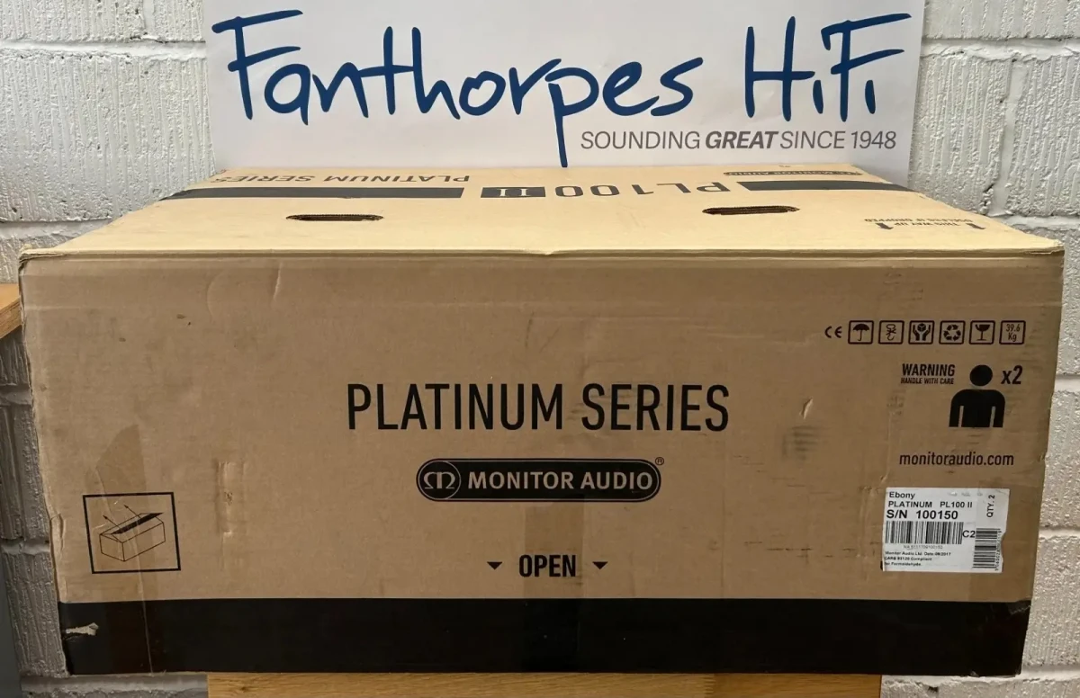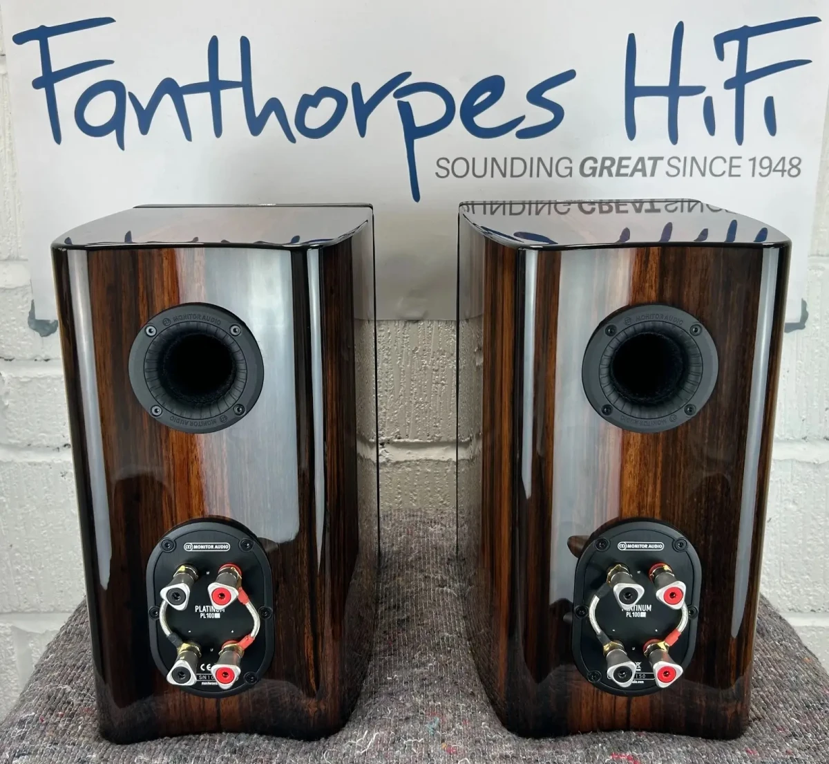 We have this preowned pair of Monitor Audio PL100 MKII standmount speakers in the piano ebony finish.