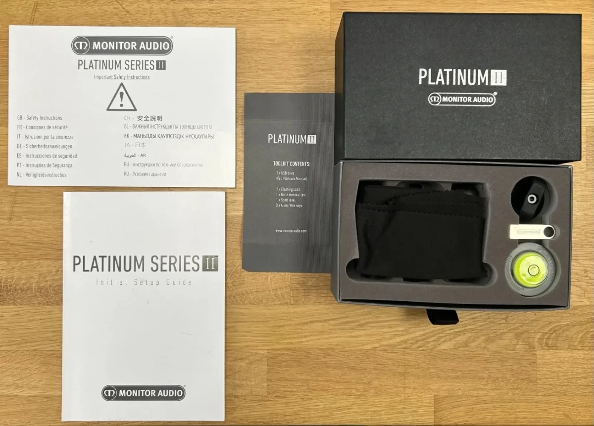 They come with their grilles, Monitor Audio toolkit, user manual, and original packaging.