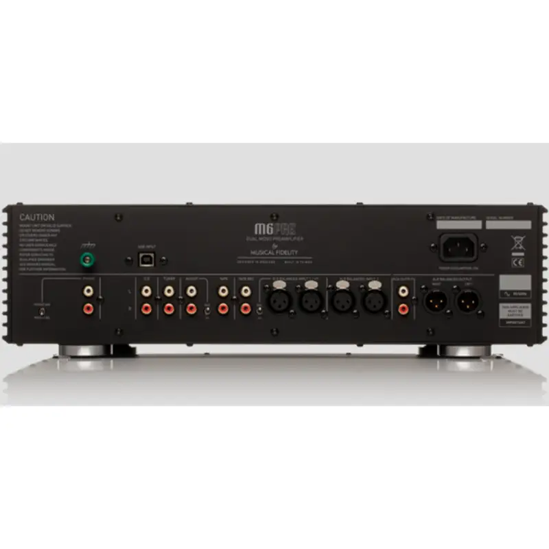 For connecting on to a power amplifier, the M6 PRE offers both RCA and XLR outputs, as well as a fixed Tape loop for other system solutions. Operation is effortlessly simple via the front-panel buttons or supplied Musical Fidelity system remote.