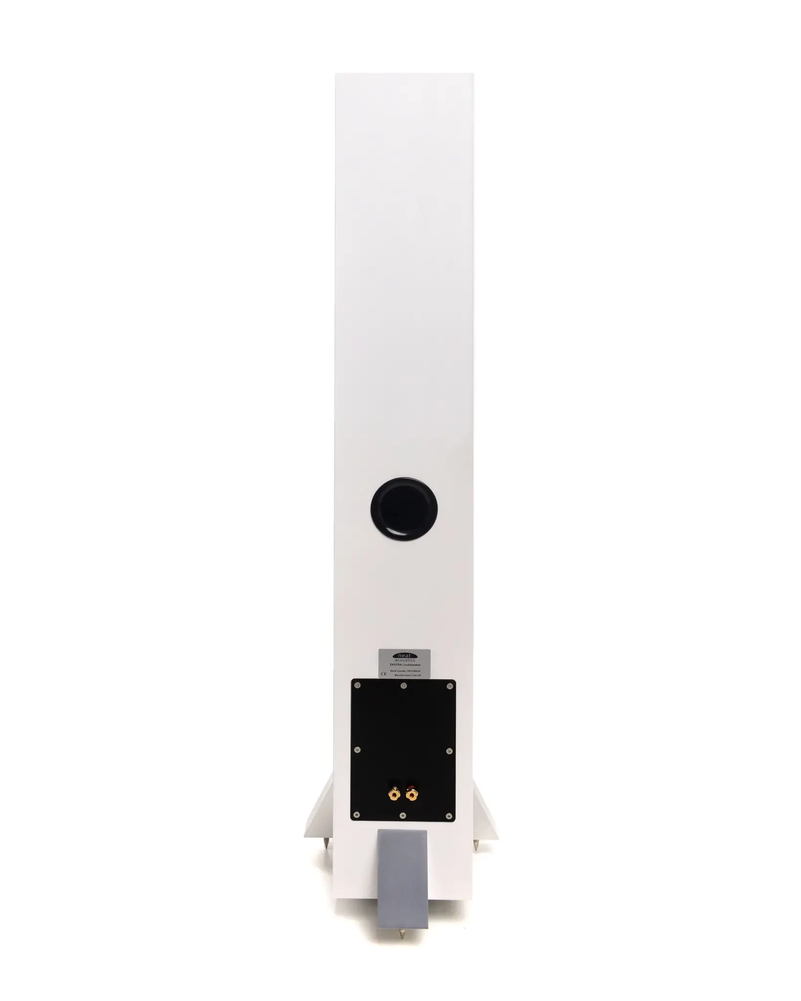 The lower, ported, section of the EKSTRA houses not one, but two of the 134mm bass drive units. One unit is located on the bottom panel, facing the floor, whilst the second is located internally, directly above the first, in a sealed iso-baric arrangement, handling only low frequencies and acting as an integral subwoofer system. The low-Q port is specially tuned to enable close to wall placement of the speaker in most rooms.