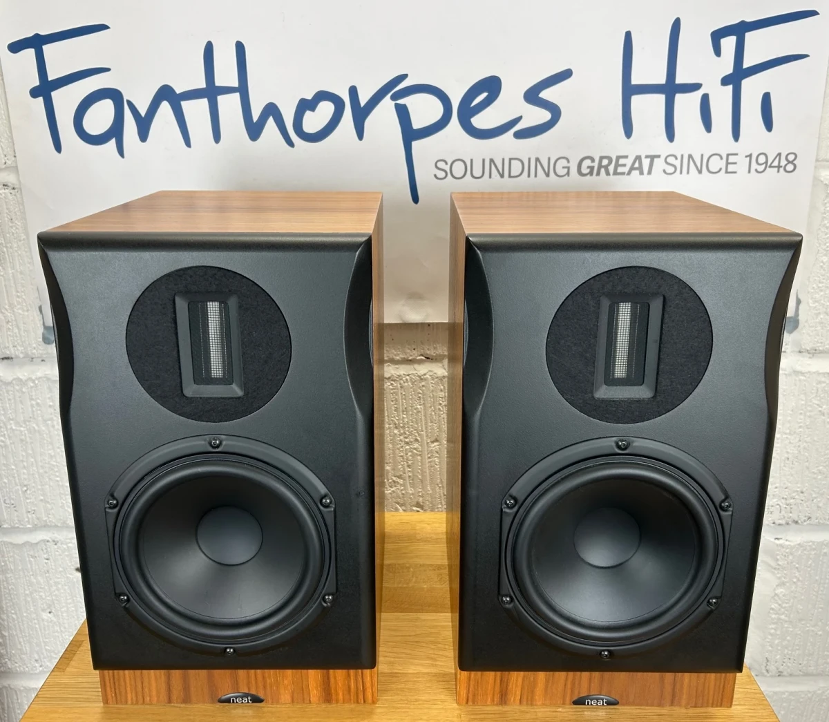 We have this preowned pair of Neat Majistra bookshelf speakers in the American Walnut finish.