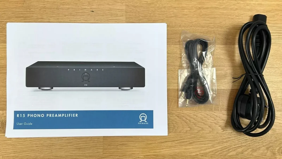 It comes with its mains lead, phono cable, a replacement user manual, and original packaging.