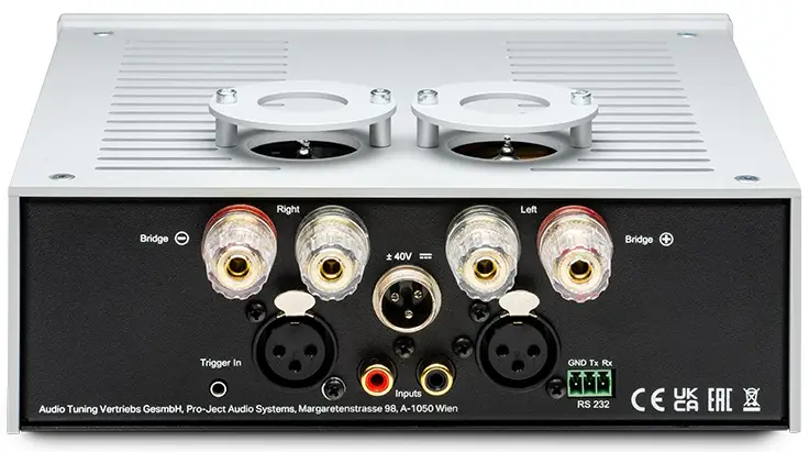 The Amp Box RS2 is equipped with both single-ended RCA input sockets and balanced XLR inputs. Input selection can be conveniently controlled via the front panel or through RS232 integration.