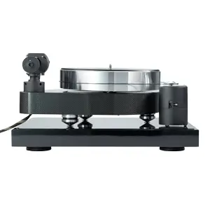 Combined with a new special polished aluminium platter with internal TPE damping and a vinyl layer on top, the inverted ceramic main bearing delivers an absolutely stable turntable speed with extra-low rumble.