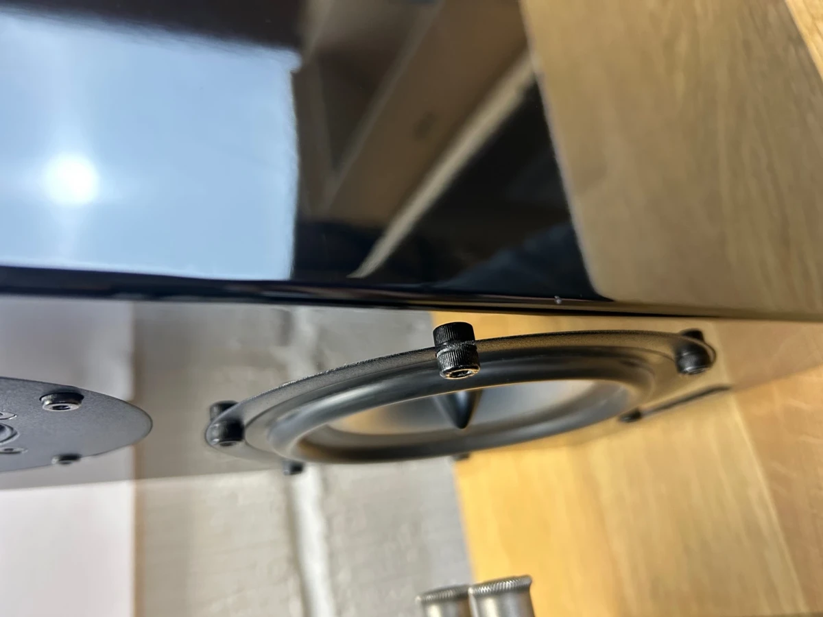 The speakers are in very good condition with one minor chip along an edge which can be seen in the pictures attached, as well as some extremely minor hairline scratches in the gloss finish which are invisible from a normal listening distance.